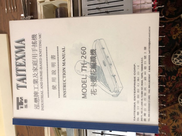 I have tested as show by the sample The Taitexma TH260 is like the Brother KH260 9mm (bulky) knitting machine; It is a simple punch card machine. Number of needle: 114 on mainbed; It is a good machine for beginners, but is built well enough, and has enough pattern capabilities to keep you engaged and productive for years to come. Gauge: Bulky, 9 mm pitch; Yarns: Medium to Bulky weight: Patterning method: 24 stitch punch card; Patterning abilities: Fair Isle, Single Motif, Tuck Stitch, Slip Stitch, Thread Lace, Weaving, Plating;