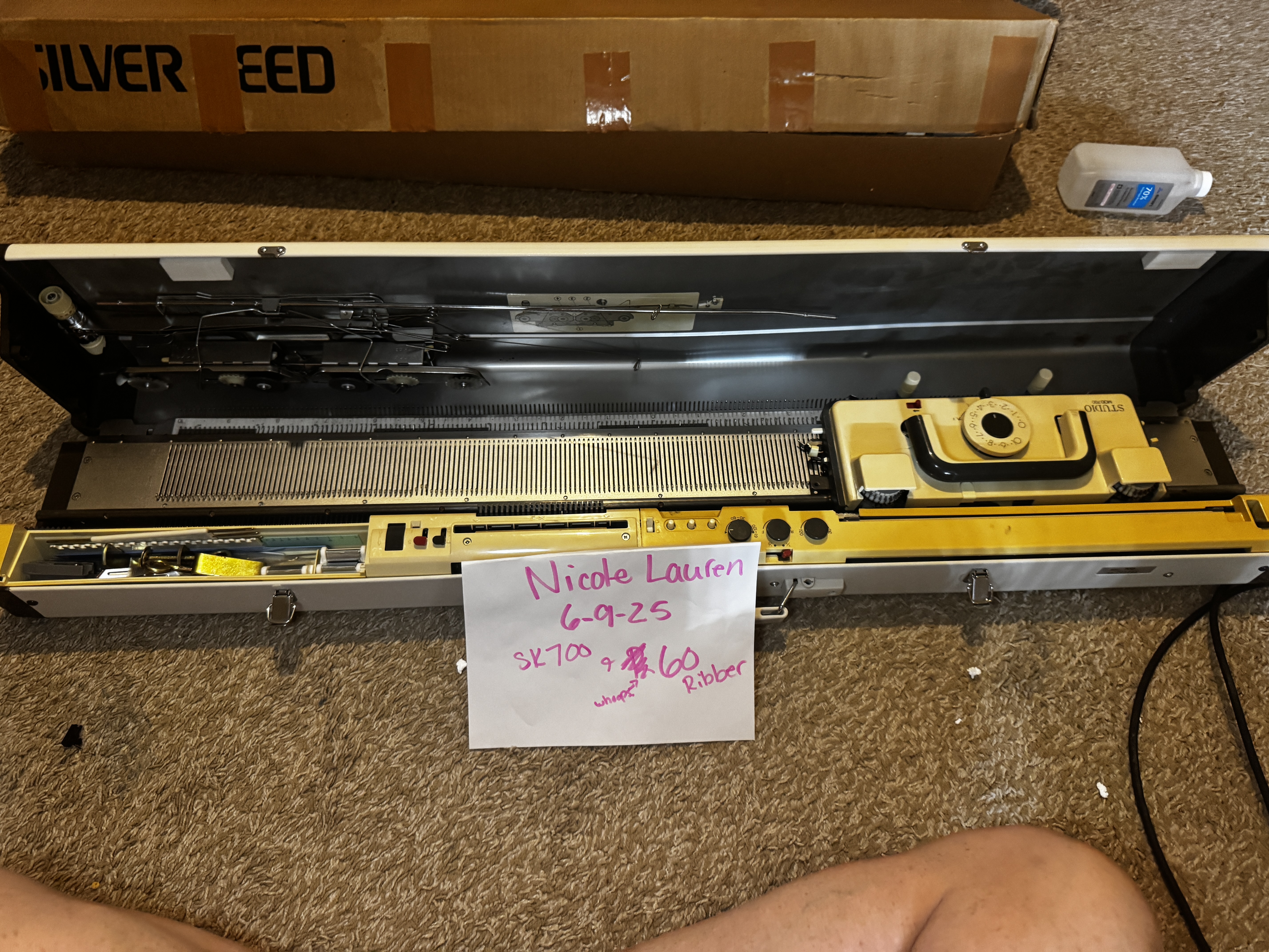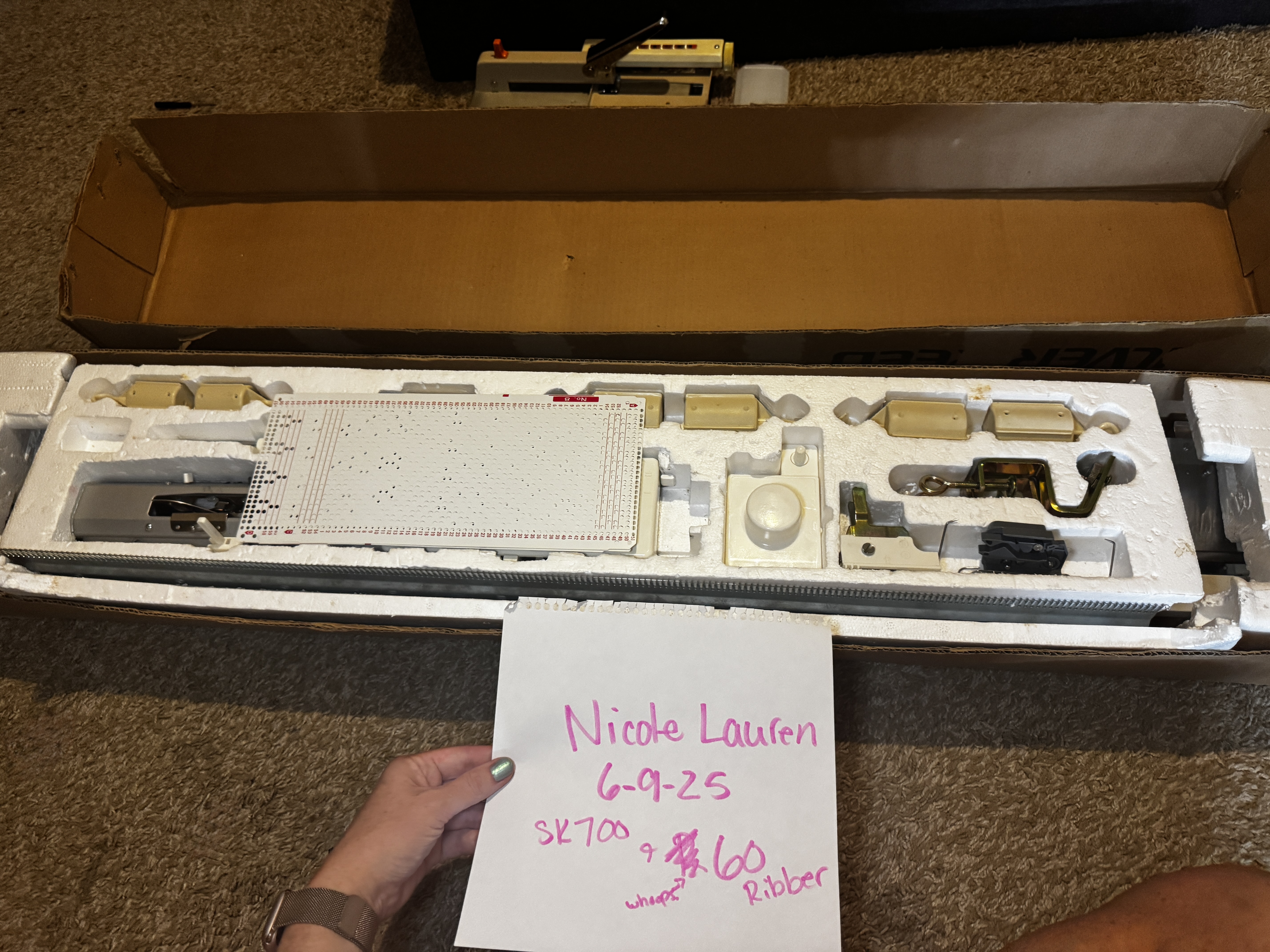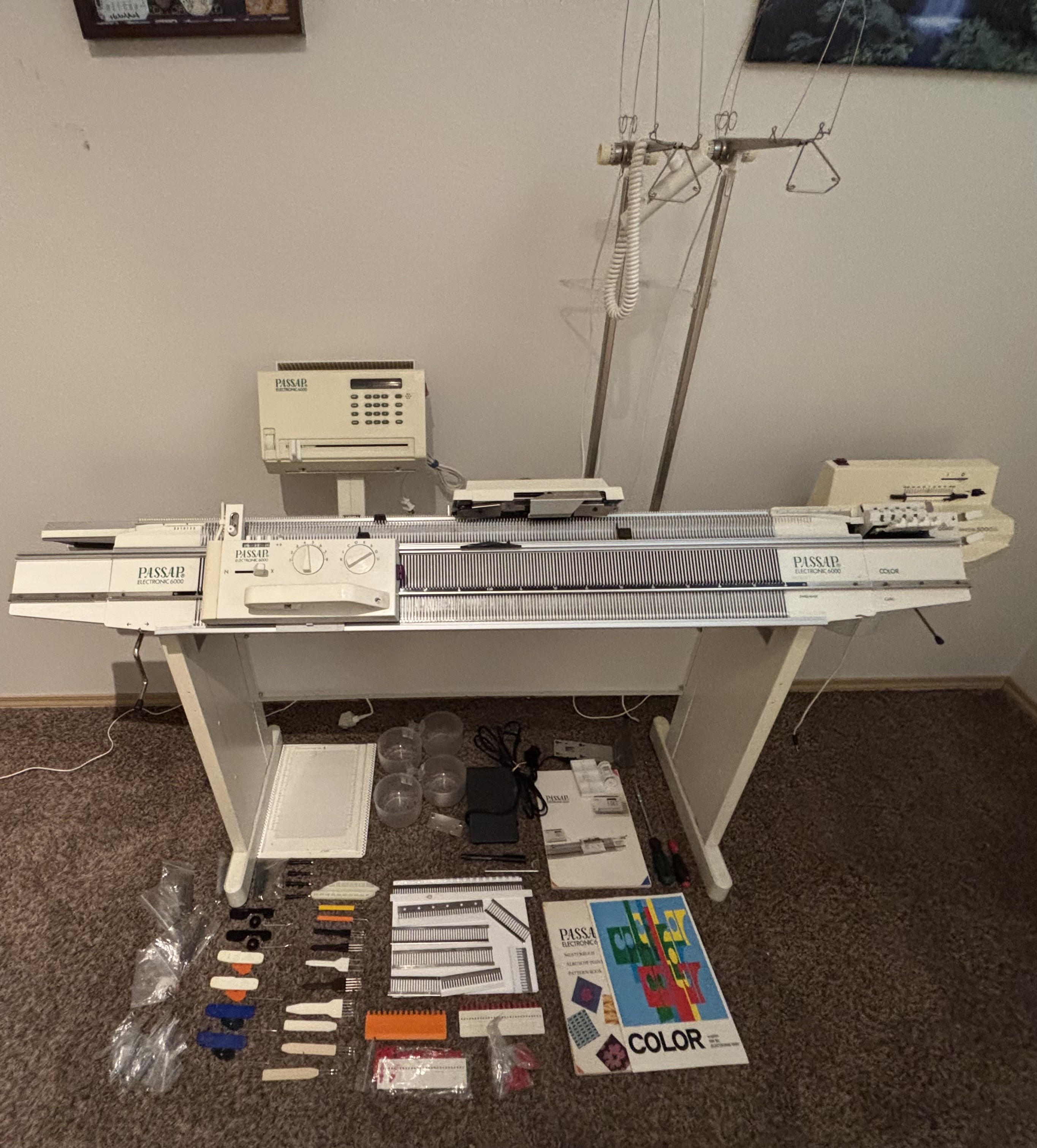 Selling my sk700 standard gauge knitting machine. Moving across country and sadly, do not have room for it. There is some cosmetic damage to the carriage, but it does not effect the function of the machine.