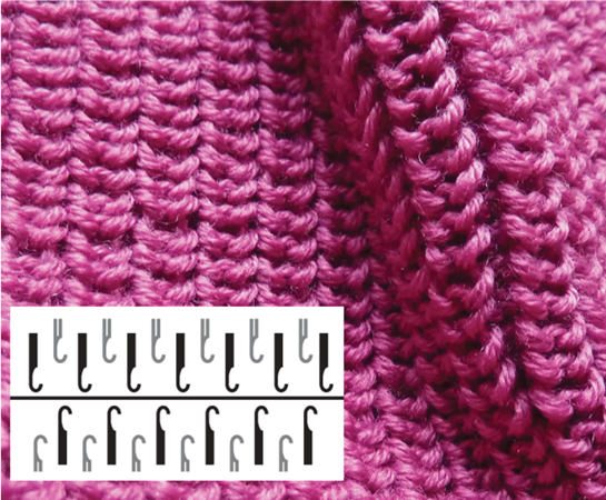 1x1 rib variation with stitches tucking on one bed (either the ribber or the main bed)