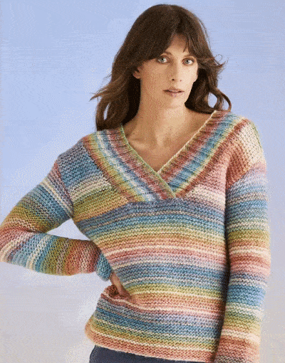 Get creative! Use this High Tide Sweater pattern and make it your own! Take a basic drop shoulder sweater pattern, knit it in plain knitting and let the yarn do the work for you.