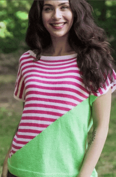 The original design is slightly fitted with cap sleeves, but you can use any sweater style from the Knit It Now pattern library to make it your own. If you're not matching the original gauge, charting the color block design is easy using Knitter’s Graph Paper or the Magic Formula tool.