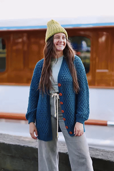 Slip into coastal comfort with the Castaway Cardigan! Designed with eyelet stitch detail, this beautiful cardigan is light, airy, and perfect for those in-between-season evenings. The name is a playful nod to both casting on and casting a net—fisherman-chic meets machine-knitting ease.