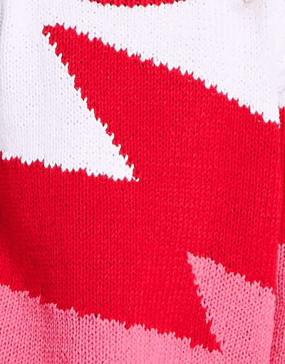 This superhero sweater uses three shades for that lightning bolt. If you’ve never tried intarsia before, this is the perfect project to dip your toes in. And here’s the best part: no matter what machine you have, you can work intarsia.